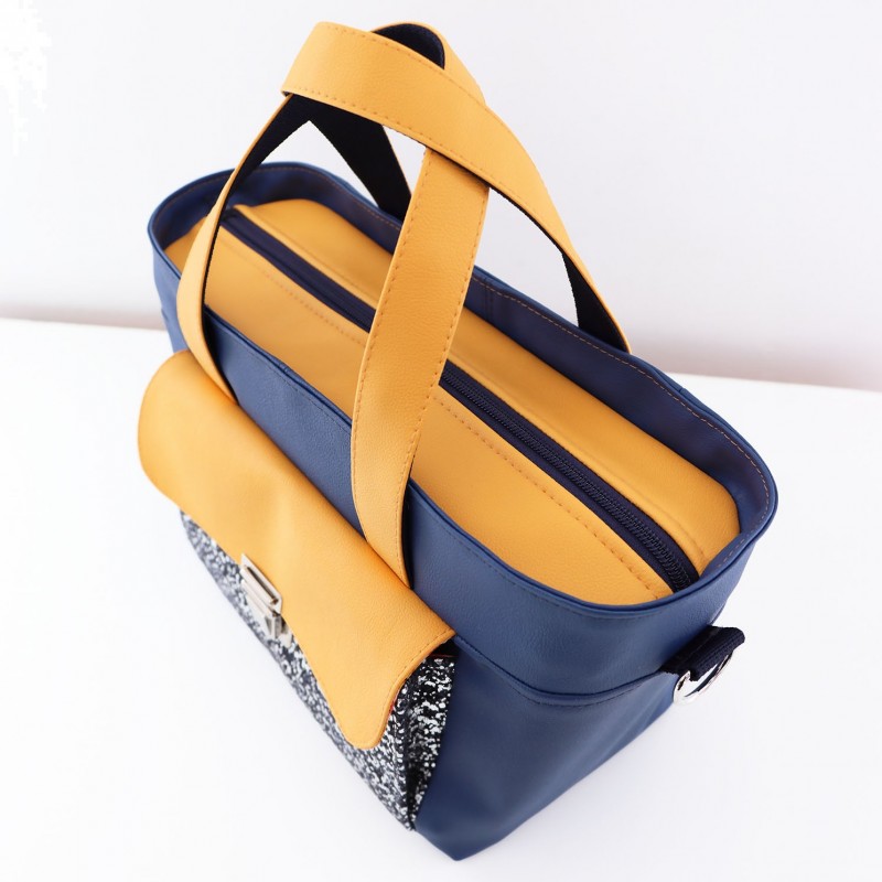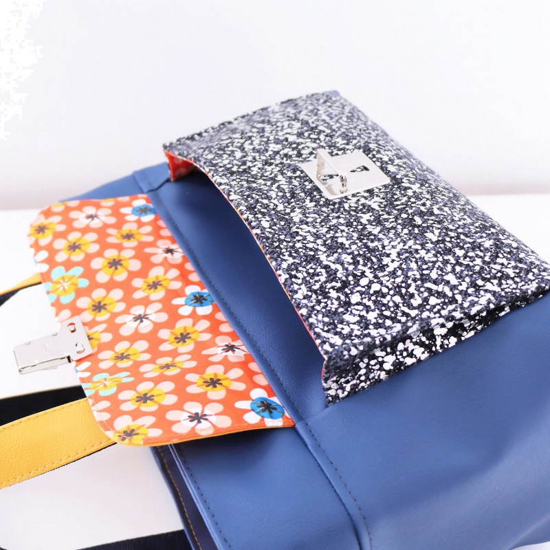 * Voilure noire en superposition sur le rabat devant et la poche dos