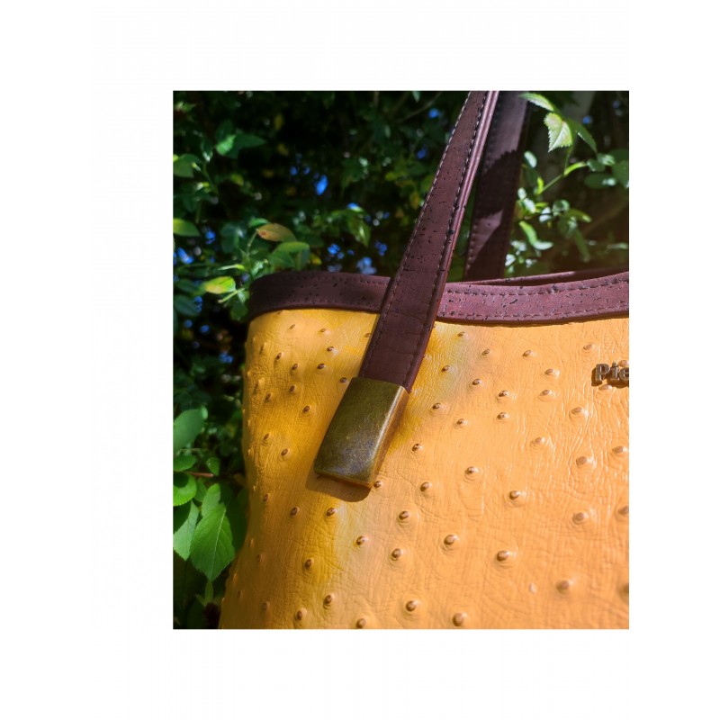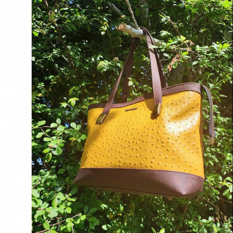 En simili autruche moutarde et liège luxe marron.