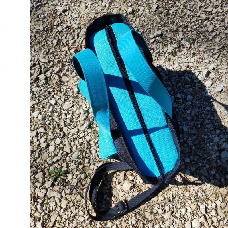* 1 morceau de toile à sac turquoise (poche devant et dessus de poignées)