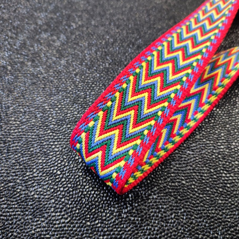 Elégante et toujours intemporelle, la sangle multi chevrons apporte de la fantaisie à tous vos sacs et bananes.