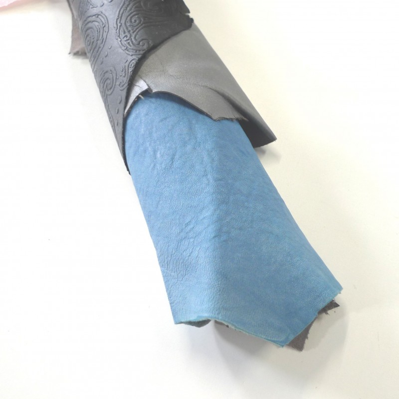 Application cuir véritable bleu clair patiné