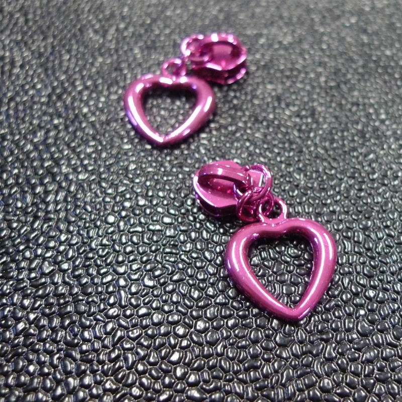 Curseur zip Coeur métal fuchsia