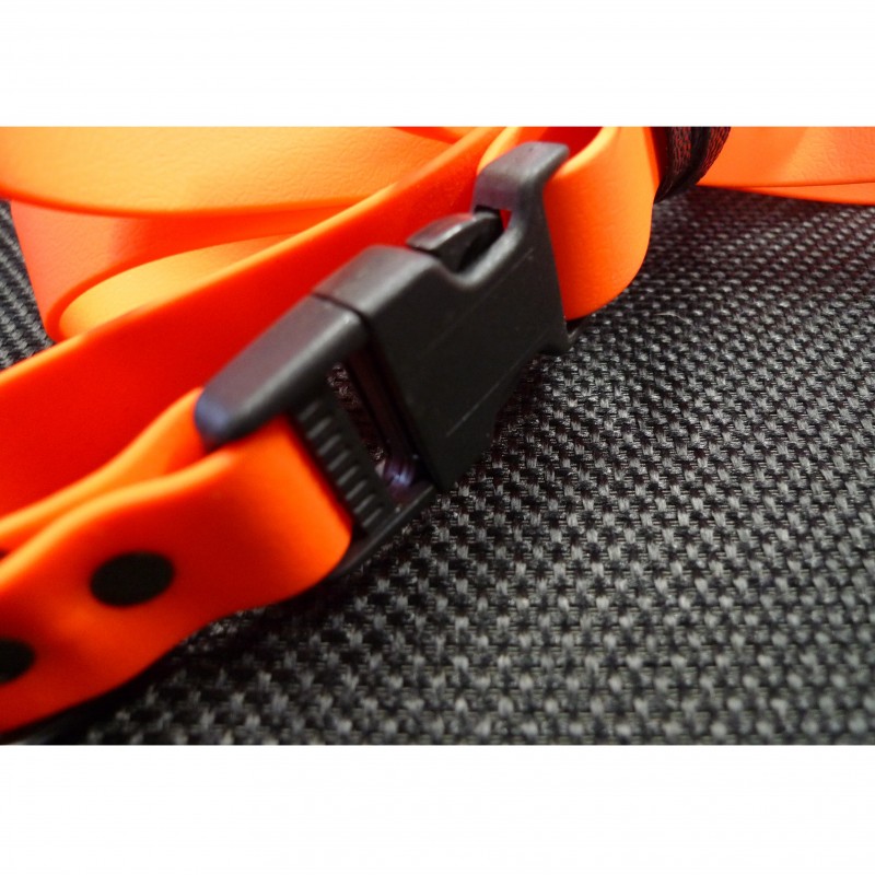 Ici l'ensemble Atlas : une sangle résistante à l'eau PVC hyper visible dans sa couleur orange fluo.