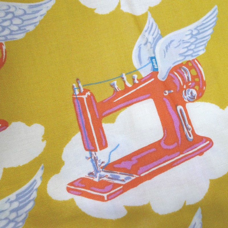 Le style unique de Alexander Henry pour ce beau coton de qualité, machines à coudre volantes.