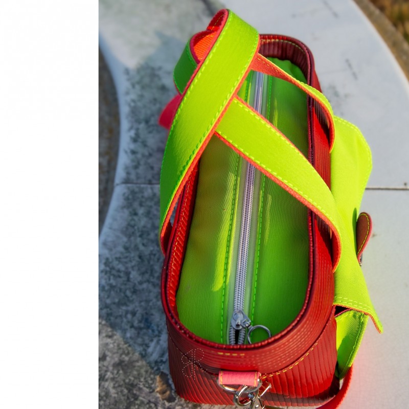 Cette matière entre le simili et la toile lourde Outdoor est un petit coup de foudre : grain toilé, nuances irisées et une qualité nautique, pour une meilleure résistance