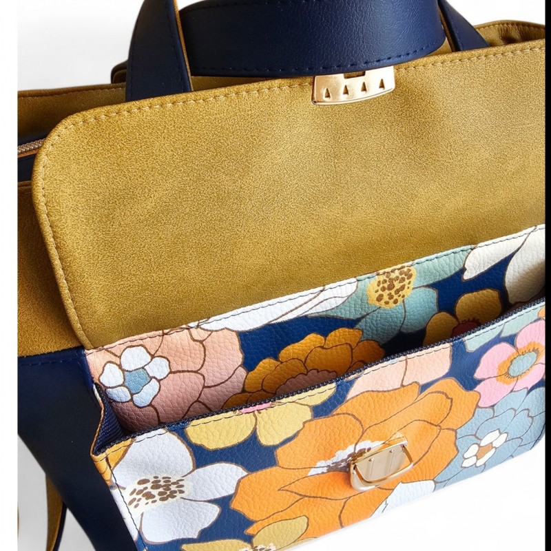 Coloris : Fond marine pétrole dessins : jaune, orange, rose, saumon, amande, menthe, écru et blanc