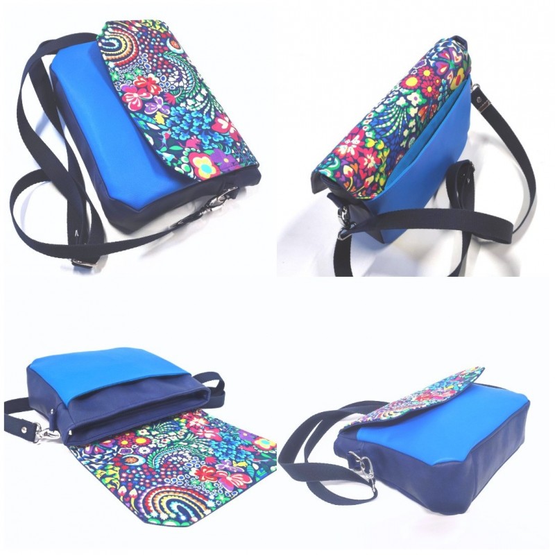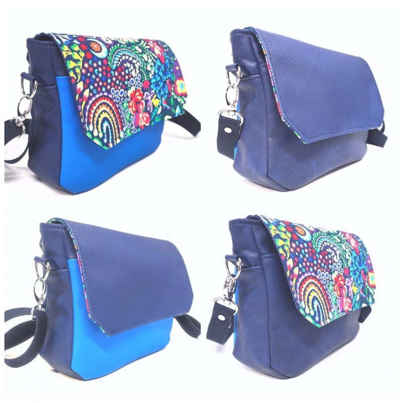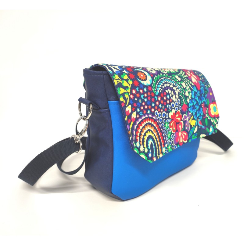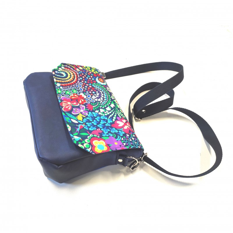 Couleur : fond marine motifs : rouge, jaune, vert, bleu, turquoise, écru, violet, orange