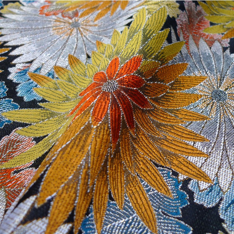 Ce jacquard "Luxuriance Irisée" a une identité visuelle très forte : un côté néo-vintage, presque japonisant, avec une richesse de textures et de lumière.
