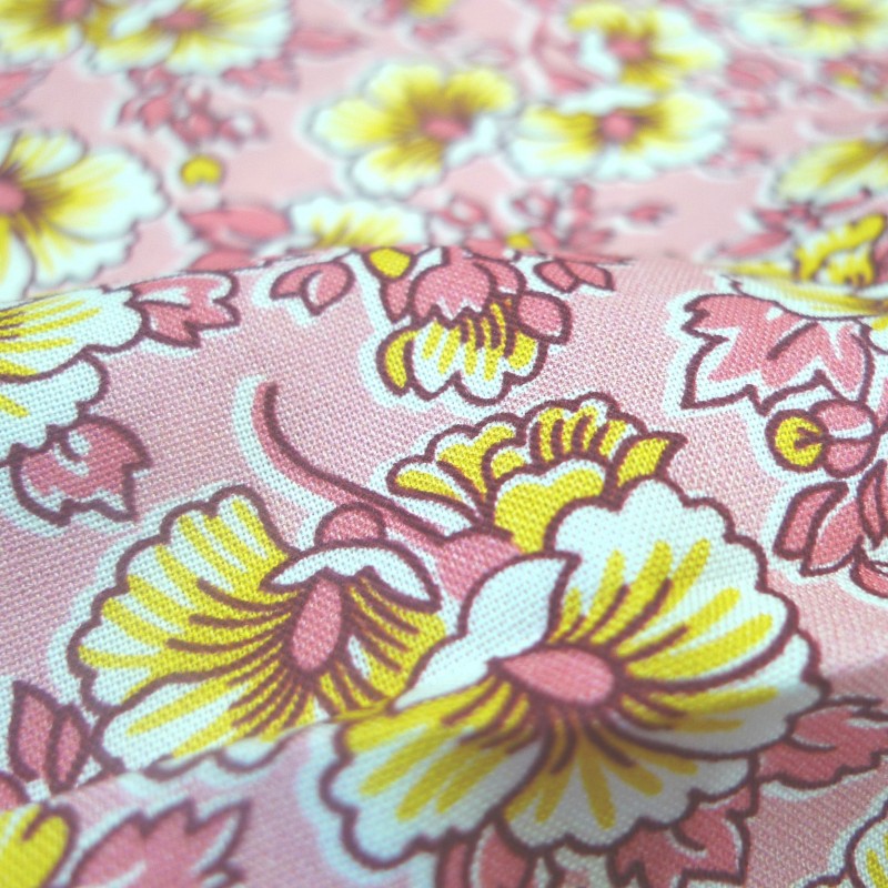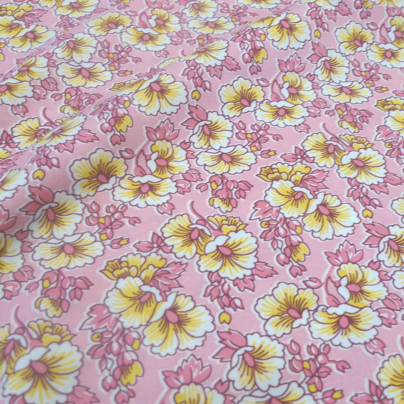 Motif : blanc, jaune et rose Fond : rose